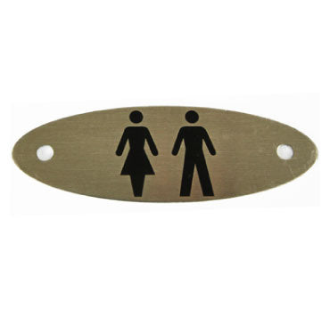 Male - female metal plate for unisex toilet use c/w fixing holes.