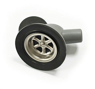 Replacement sink waste assembly for portable toilet sink. For 3/4" ID drain hose. 48mm stainless steel top. Sink plug included.